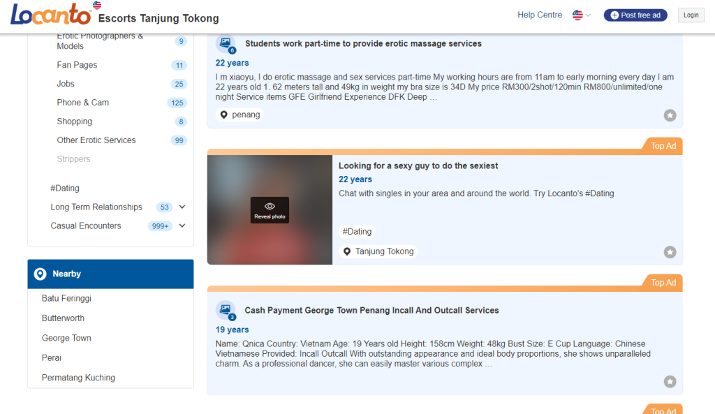 penang escortと検索すると様々なescortサービスを提供してくれるサイトを訪問できます。ご自身で気に入ったサイトがあればそこから連絡先(WhatApp)にアクセスして女の子を紹介してくれたりします。個人的におすすめのサイトはlocant。色々なお店をまとめる役割を果たしており、価格も比較しながら選べる。